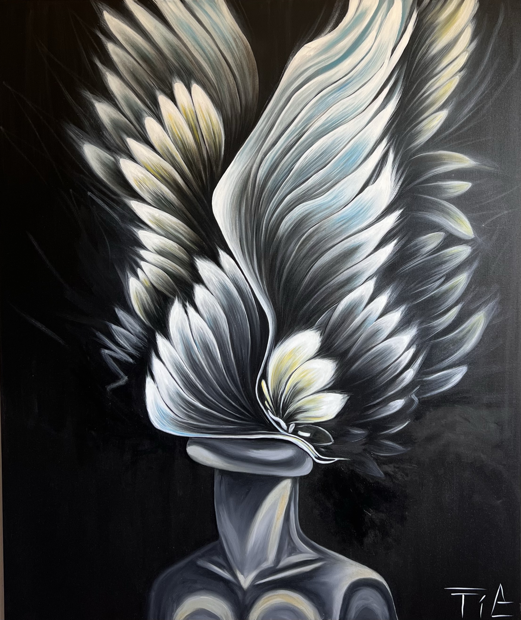 She started to draw digital but it gotten more fun to paint on canvas.